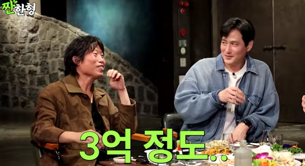 신동엽이 "청년 극단 40주년 때 얘기 들어보니까 회당 5,000만 원씩 받았다던데"라고 모함을 퍼트리자, 유해진은 "루머다"며 "3억 정도. 이것저것 빼면 한 2억 남나?"라고 너스레를 떨었다.
