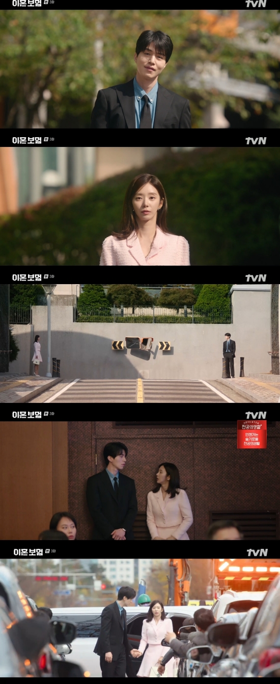 7일 방송된 tvN 새 월화드라마 '이혼보험' 3회에서는 노기준(이동욱 분)과 강한들(이주빈)이 손을 잡고 걷는 모습이 그려졌다.