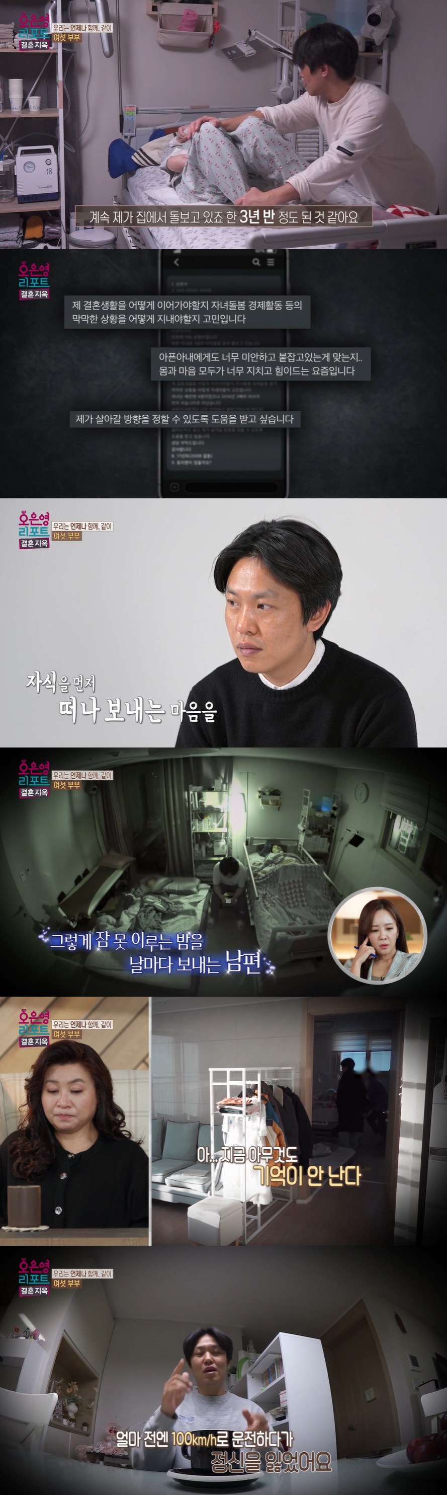 새벽에도 아내를 돌봐야 하는 남편은 잠 못 이루는 밤을 매일같이 보냈다. 운전 중에도 하품을 참지 못하며 패널들을 걱정을 산 남편은 "아무것도 기억이 안 난다. 할 얘기가 있었는데"라며 심각한 모습을 보였다.