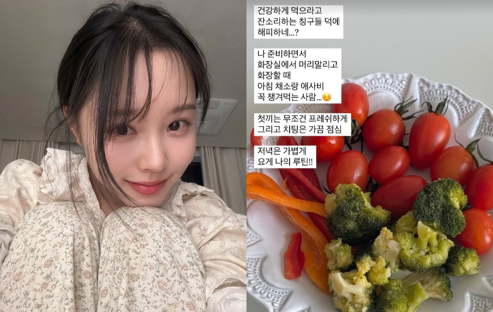이어 "첫끼는 무조건 프레쉬하게 그리고 치팅은 가끔 점심. 저녁은 가볍게 요게 나의 루틴"이라며 자신만의 건강 식단을 공개했다.