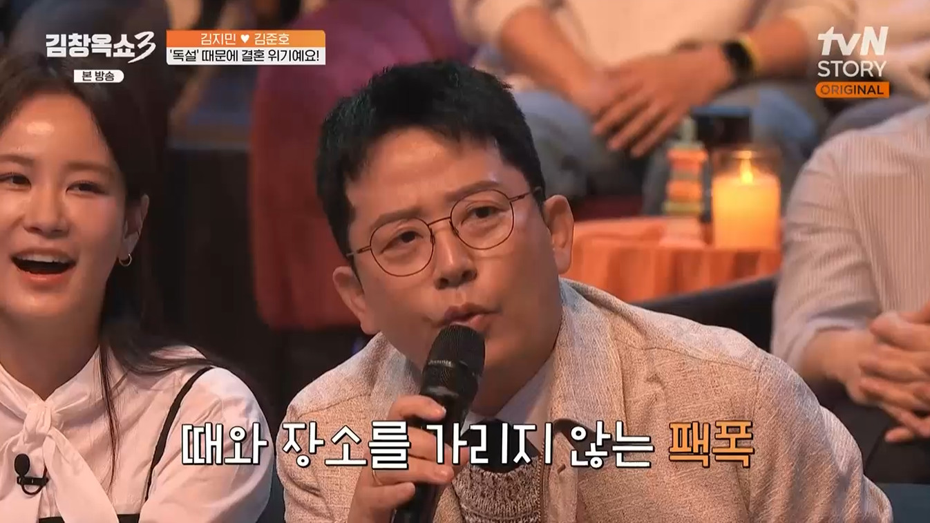 8일 방송된 tvN STORY '김창옥쇼3'에는 오는 7월 결혼을 앞두고 있는 방송인 김준호 김지민 커플이 출연했다.
