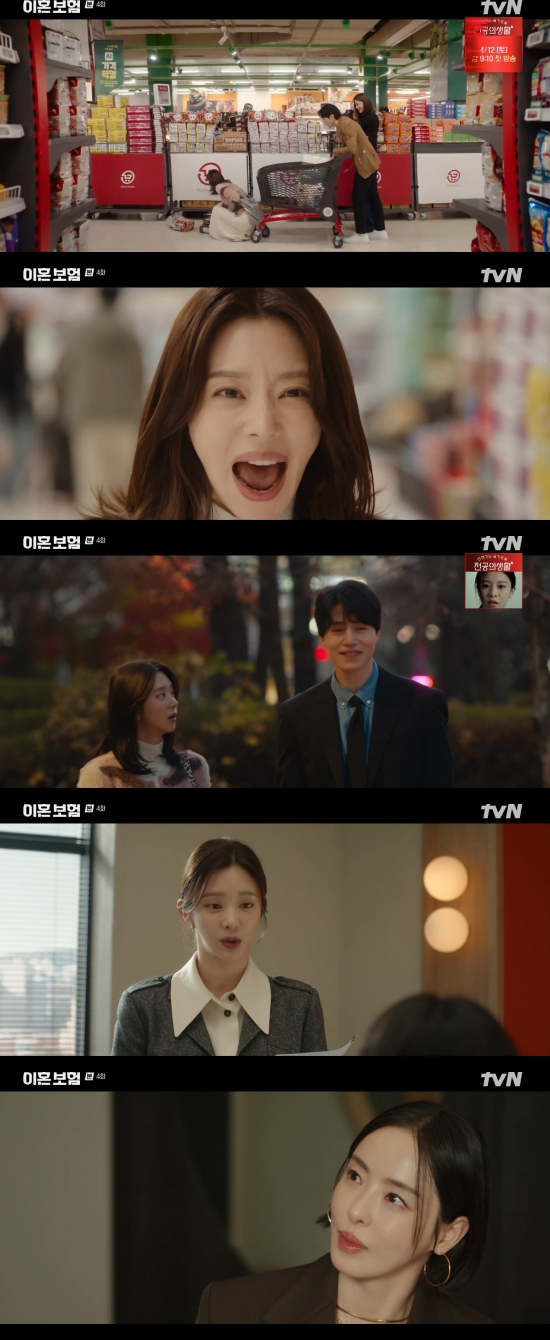 8일 방송된 tvN 새 월화드라마 '이혼보험' 4회에서는 전나래(이다희 분)가 강한들(이주빈)과 노기준(이동욱)의 관계를 궁금해하는 모습이 그려졌다.