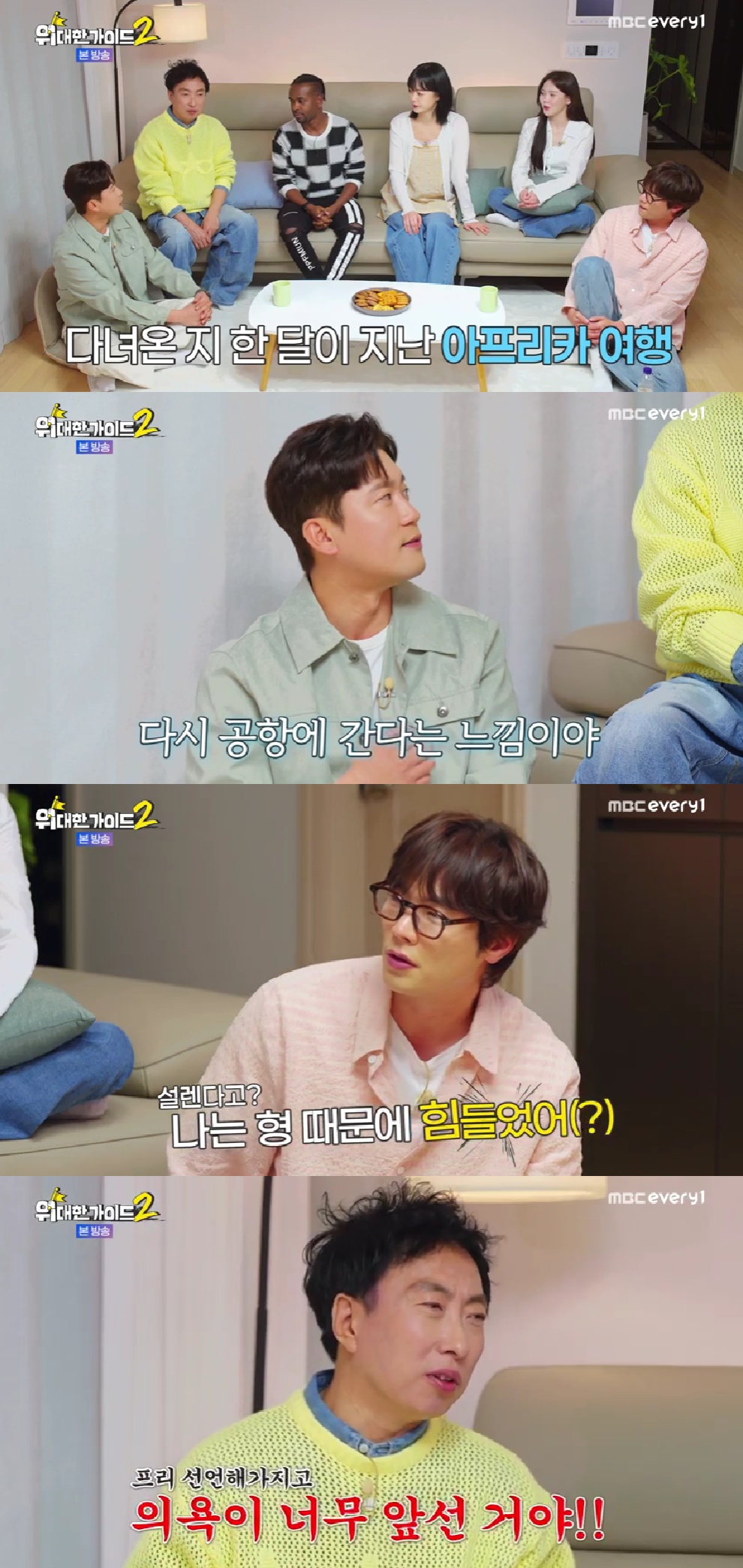 이날 출연진은 아프리카 여행을 담은 영상을 함께 시청했다. 김대호는 "저는 우리가 (아프리카를) 다녀온 지 한 달이 됐는데 다시 본다니까 다시 공항에 간다는 느낌. 설렌다"고 여운을 전했다.
