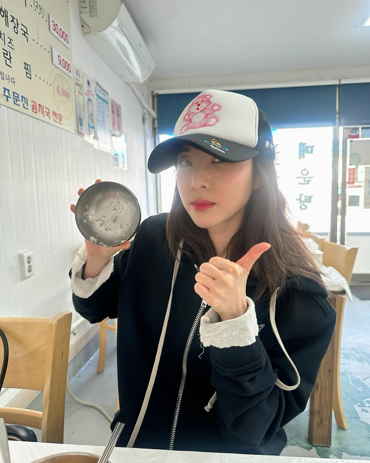 공개된 사진 속 산다라박은 깔끔하게 비운 밥공기를 들고서 인증샷을 찍는 모습이다.