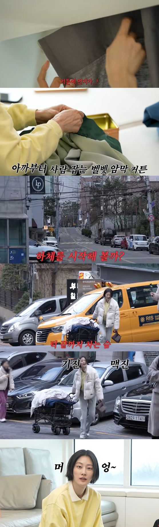 숨을 헐떡이며 오르막길을 오른 이현이는 집에 도착한 후 "너무 힘들다"며 가족들과 함께 커튼을 다시 걸었다.