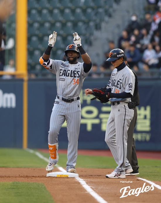 (엑스포츠뉴스 잠실, 김근한 기자) 누가 진짜 플로리얼인가. 한화 이글스 외야수 플로리얼이 본헤드 주루사를 만회하는 동점 적시 3루타로 팀 2연패 탈출을 이끌었다. 플로리얼은 경기 후반 자동 고의4구까지 얻는 무게감을 선보였다.