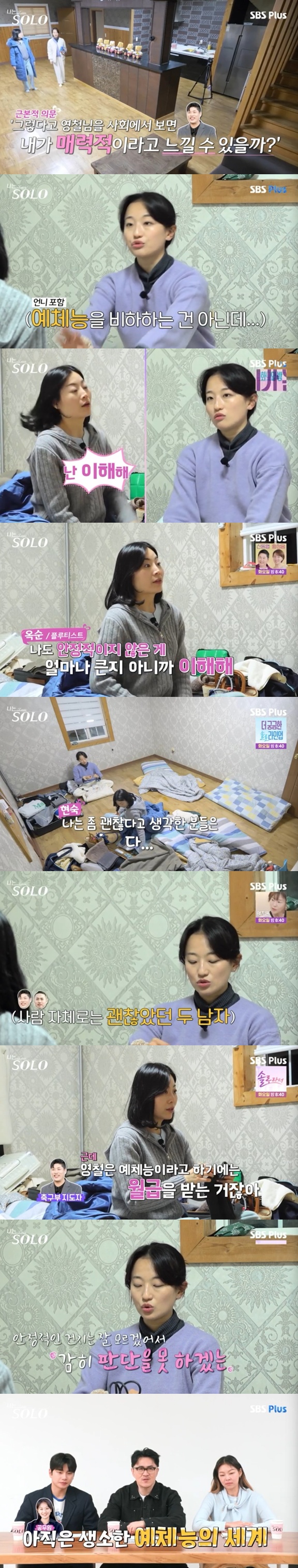 그러자 옥순은 "영철은 예체능이라고 하기에는 월급을 받지 않냐"라고 이야기했다.