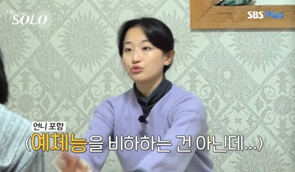 25기 현숙은 플루티스트 옥순에게 "예체능을 비하하는 건 아닌데"라고 말하며 양해를 구했다.
