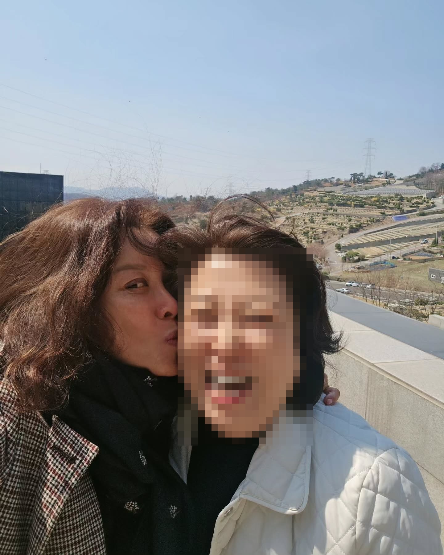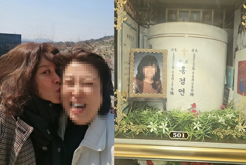 사진에는 세상을 떠난 홍지민의 둘째 언니의 유골함이 담겨 있다. 홍지민은 가족과 환하게 웃으며 포즈를 취하기도 했다.