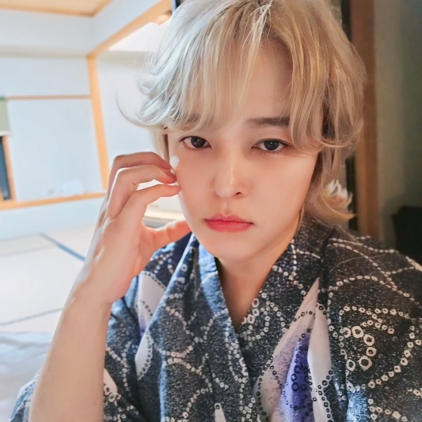 사진 속 김정훈은 금발 머리를 한 채 유카타를 입고 다양한 포즈를 취하고 있다.