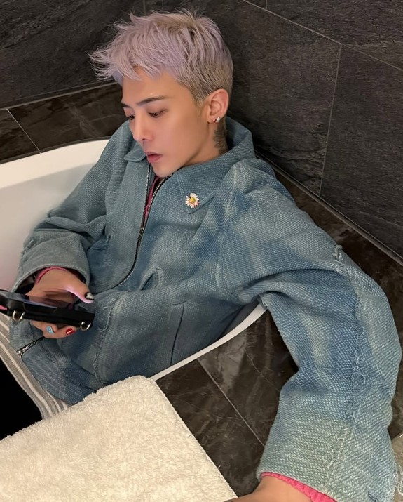사진 속 지드래곤은 욕조 안에 누워 여유롭게 휴식을 즐기고 있는 모습. 이 가운데 지드래곤은 청재킷을 입고 멋을 뽐낸 상태로 반신욕(?)을 즐기고 있어 웃음을 안긴다.