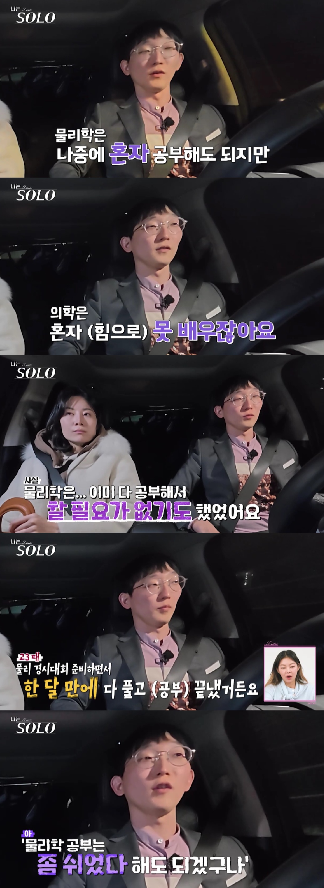 그러면서 "물리학은 이미 다 공부해서 할 필요가 없기도 했다. 고3 때 물리 경시대회 준비하면서 한 달 만에 다 풀고 (공부) 끝냈다"면서 "물리학 공부는 좀 쉬었다 해도 되겠구나 싶었다"며 천재적인 면모를 드러냈다.