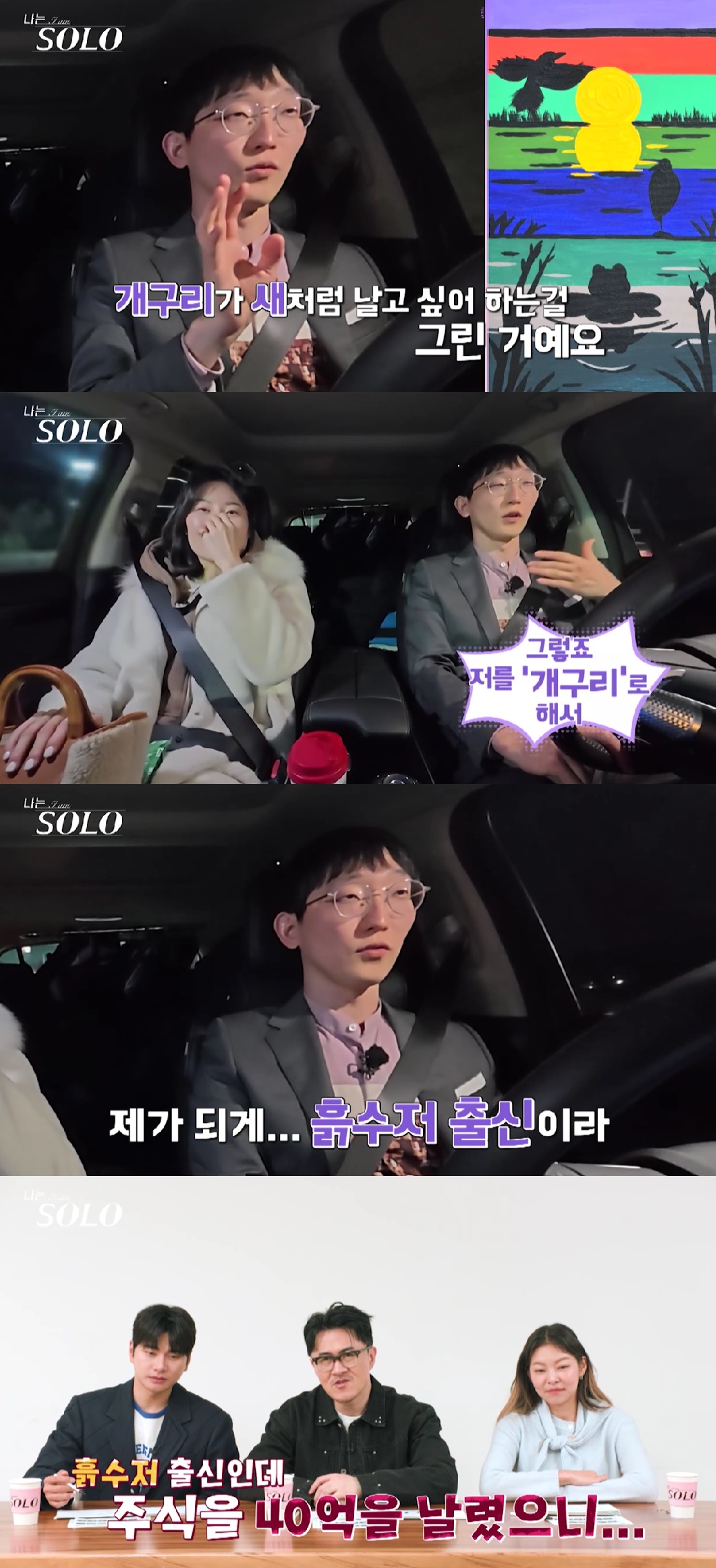 이에 옥순은 "광수님도 이걸 그릴 당시에 날고 싶은? 우물 안 개구리 같은 느낌이 있었구나"라고 이해했고, 광수는 "제가 흙수저 출신이다"고 고백했다.