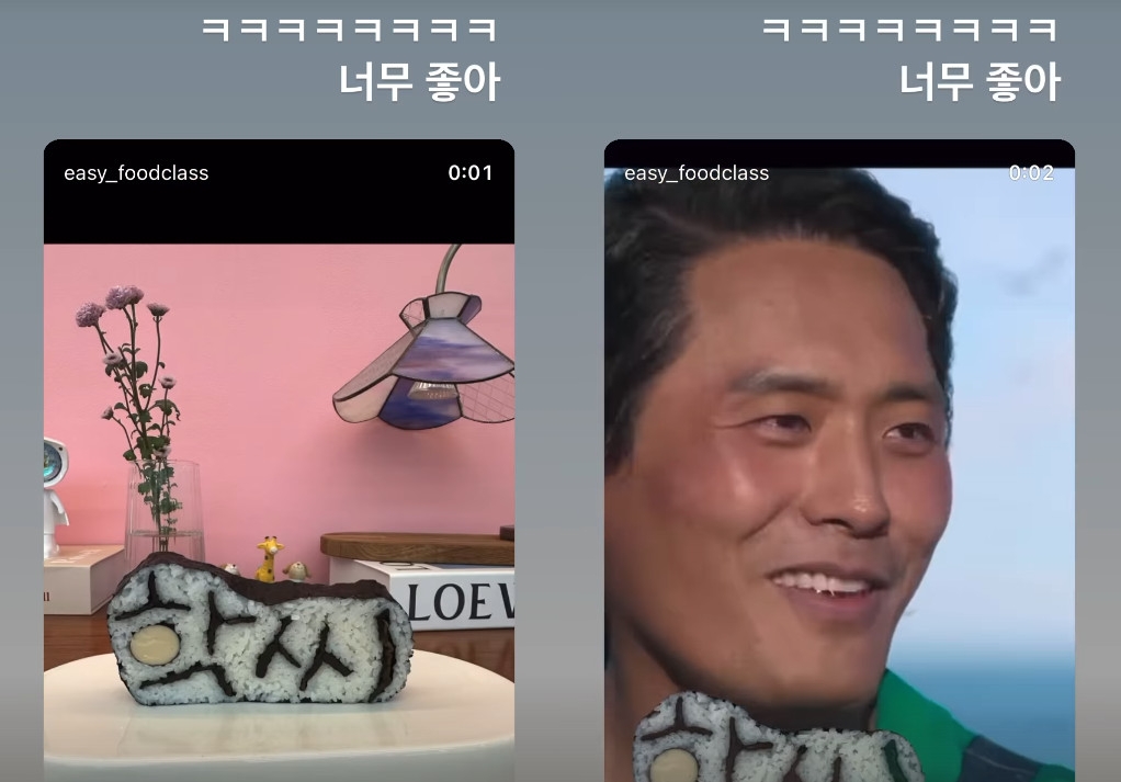 이어 거친 말들과 폭력적인 모습을 보이는 빌런으로 시청자들의 분노를 자아낸 부상길이 말끝마다 '학씨'를 붙인 영상에 김밥 사진을 합성해 마치 자막 효과처럼 연출해 웃음을 자아냈다.