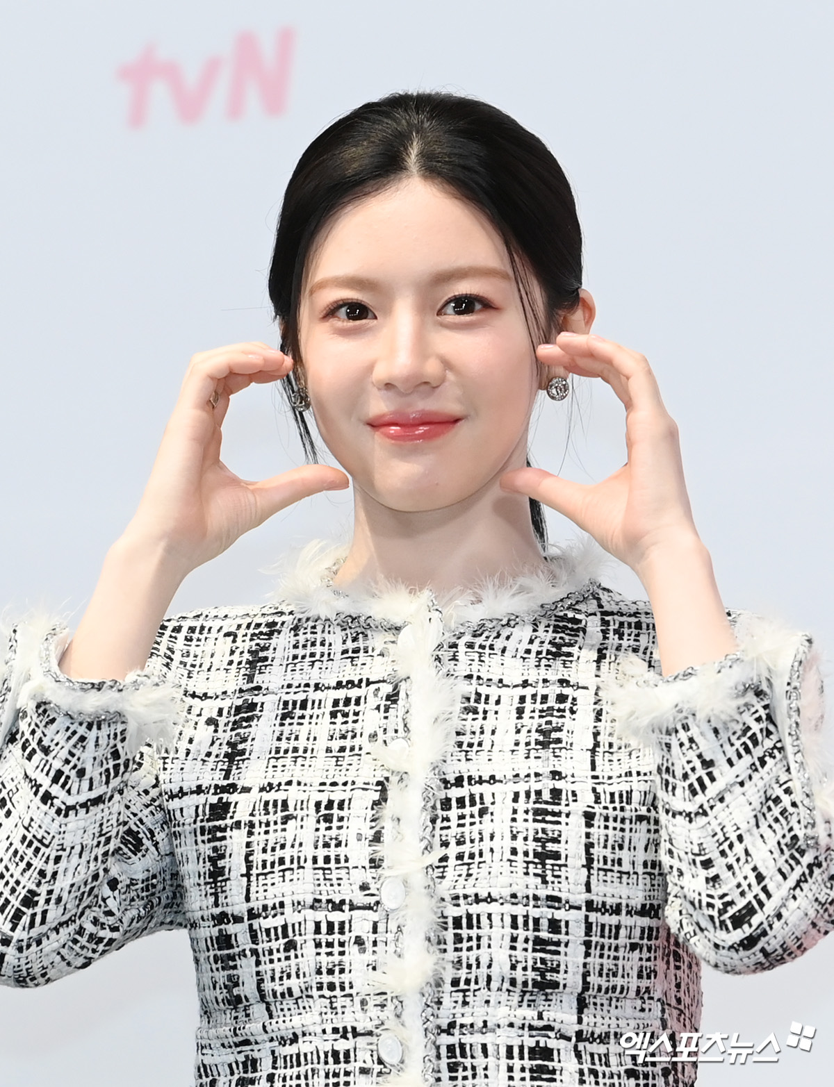 10일 진행된 tvN 새 드라마 '언젠가는 슬기로울 전공의생활' 제작발표회에 참석한 고윤정은 흑백 배색의 트위드 미니 원피스를 착용해 단아하면서도 세련된 분위기를 연출했다. 클래식한 트위드 패브릭에 깃털 장식 디테일이 더해져 자칫 무거울 수 있는 소재에 경쾌함을 부여했다.