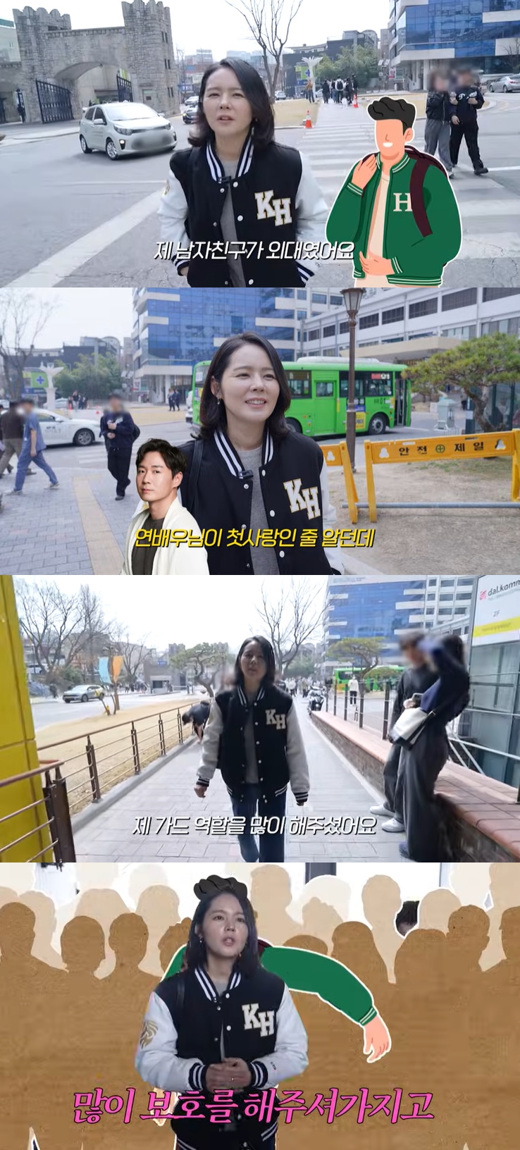이날 영상에서 한가인은 자신의 모교인 경희대학교에 방문했다. 경희대학교 관광경영학과 01학번인 한가인은 과잠을 입고 학교 전경을 둘러보았다.