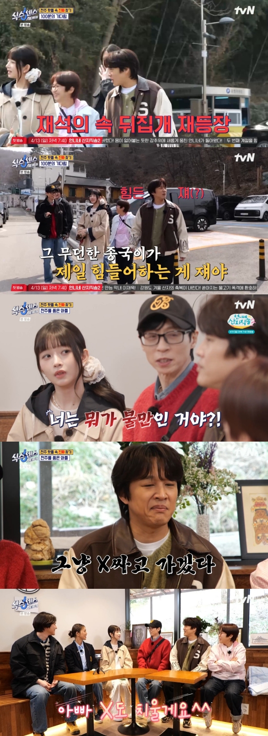 유재석은 레이가 단답형으로 대답하자 "누가 힘든 거 모르니? 누가 힘든 거 몰라?"라며 답답함을 토로했다. 송은이는 "너랑은 앙숙이다"라며 덧붙였고, 유재석은 "인연이 있지. 앙숙이라기보다 티키타카가 있는 친구다"라며 털어놨다.