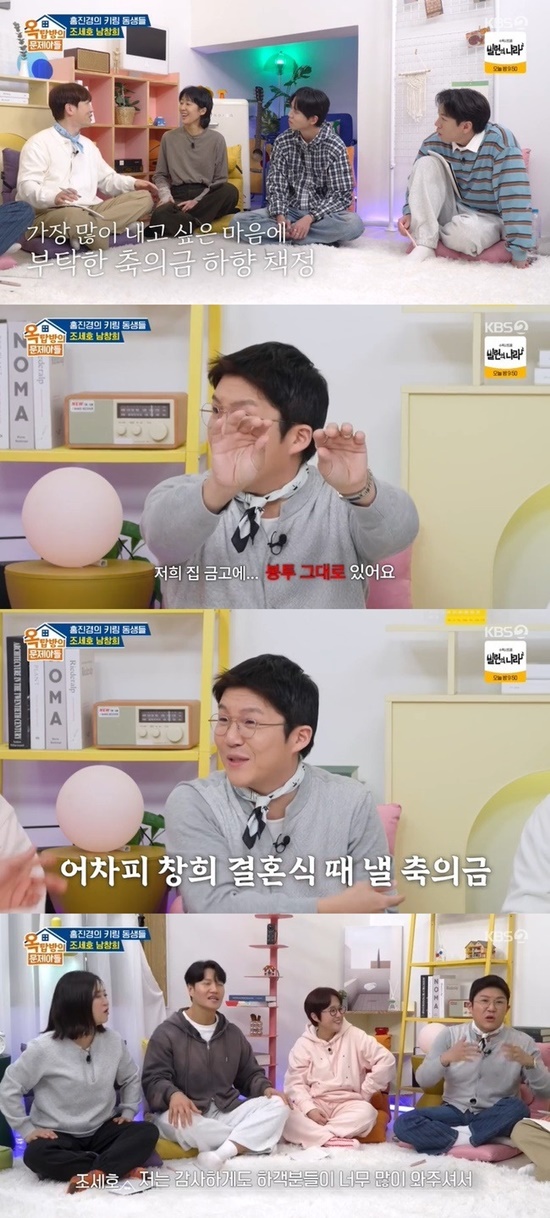 이날 조세호는 "남창희 씨가 준 축의금이 우리집 금고에 봉투 그대로 있다"고 얘기했다.