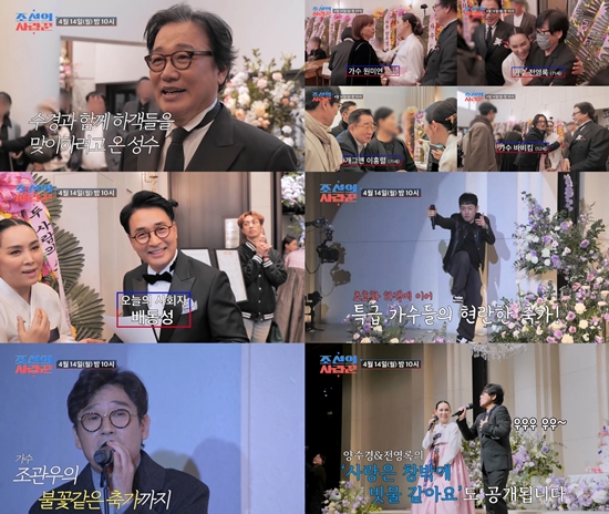 초호화 하객 라인업에 '조선의 사랑꾼' MC들 역시 연신 감탄한 가운데, 김국진은 "저 당시에는 정말 범접할 수 없는 대단한 분들 아니었냐"라며 오랜만에 보는 얼굴들에 흥분했다. 여기에 가수 바비킴, '미스터트롯3' 진을 차지한 김용빈 등 세대를 아우르는 다양한 스타 하객들이 참석해 자리를 빛냈다.