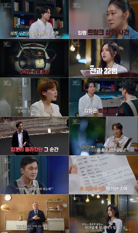 김일곤은 “억울하게 살았다”고 연신 호소했고 당시 그를 담당한 프로파일러 권일용은 “어디로 튈지 모르는 럭비공 같은 사이코패스”라며 “오랫동안 수많은 사람들에게 쌓인 감정을 분출하지 못하고 임계점에 도달했다”고 분석해 소름을 돋게 했다.