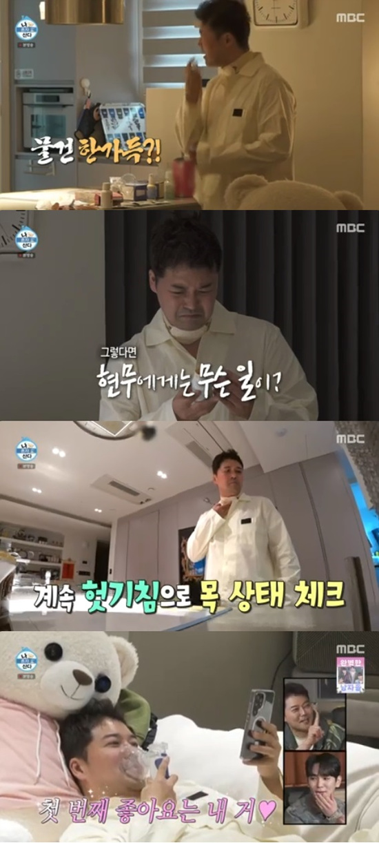 이날 전현무는 여러 대의 가습기, 공기청정기를 풀가동한 침실에서 헛기침을 하면서 나와 궁금증을 자아냈다.