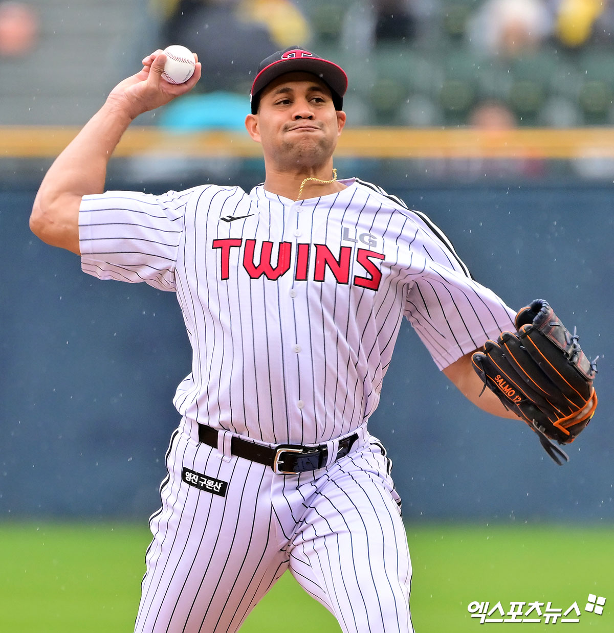 ​​​​​​​(엑스포츠뉴스 잠실, 김한준 기자) 12일 오후 서울 송파구 잠실야구장에서 열린 '2025 신한 SOL Bank KBO리그' 두산 베어스와 LG 트윈스의 경기, 1회초 LG 선발투수 치리노스가 공을 힘차게 던지고 있다.