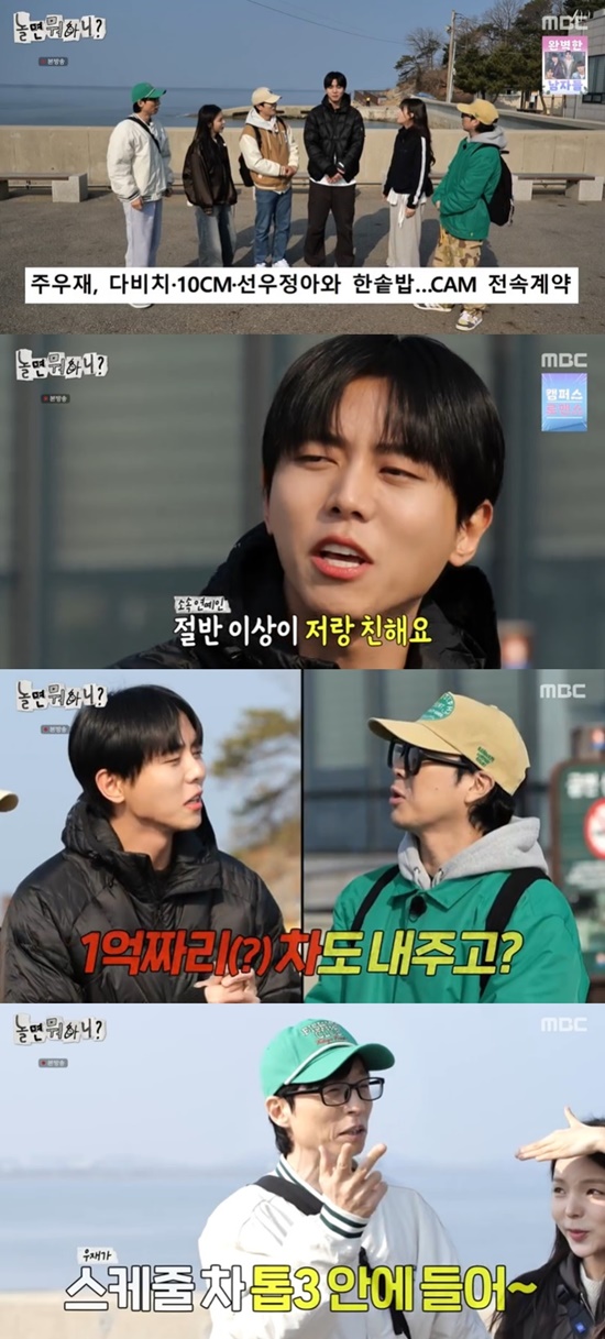 12일 방송된 MBC '놀면 뭐하니?'에서는 유재석은 주우재의 최신 근황을 전하며 "(주)우재가 오늘 억대 스케줄 차를 타고 왔다"고 얘기해 놀라움을 안겼다.