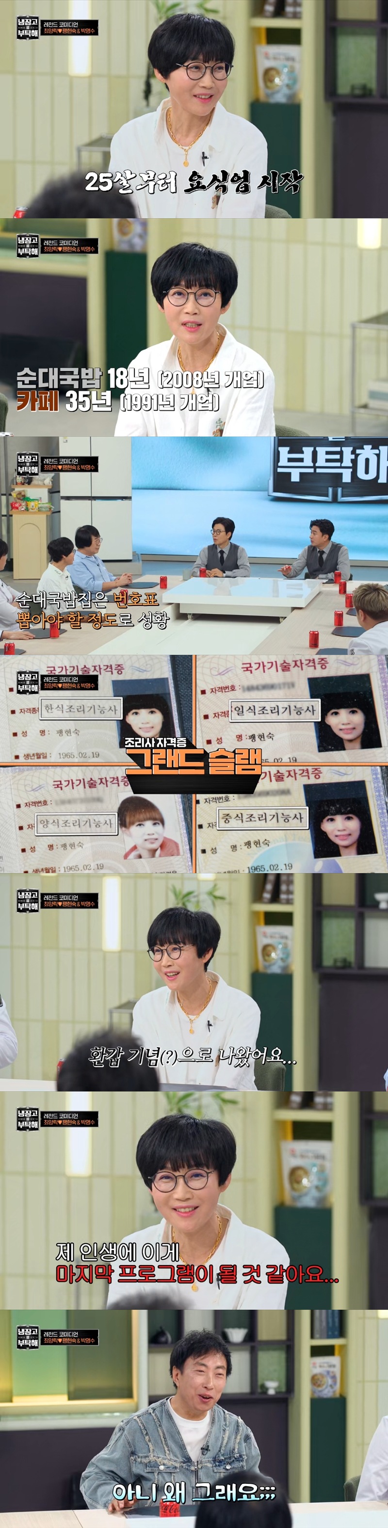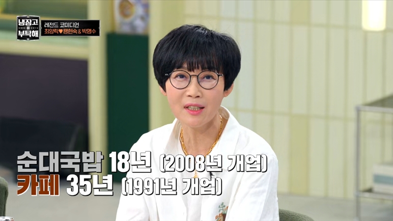 팽현숙은 "25살부터 시작했다. 한 10번 망했다. 지금은 순대국밥집과 카페 두 가지를 운영하고 있다"고 밝혔다.