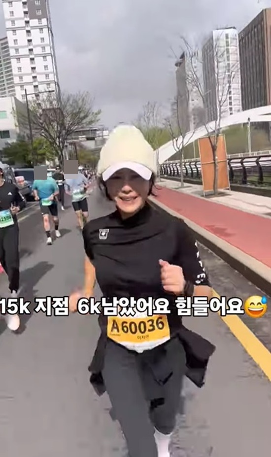 이지현이 공개한 사진과 영상에는 마라톤 하프코스 도전 중인 이지현의 모습이 담겨 있다.