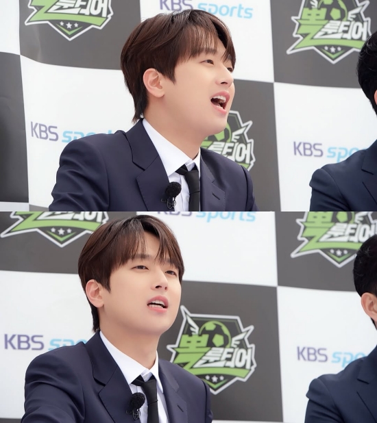 사진 속 이찬원은 '뽈룬티어' 촬영 현장에서 경기에 과몰입하는 듯한 모습을 보인다.