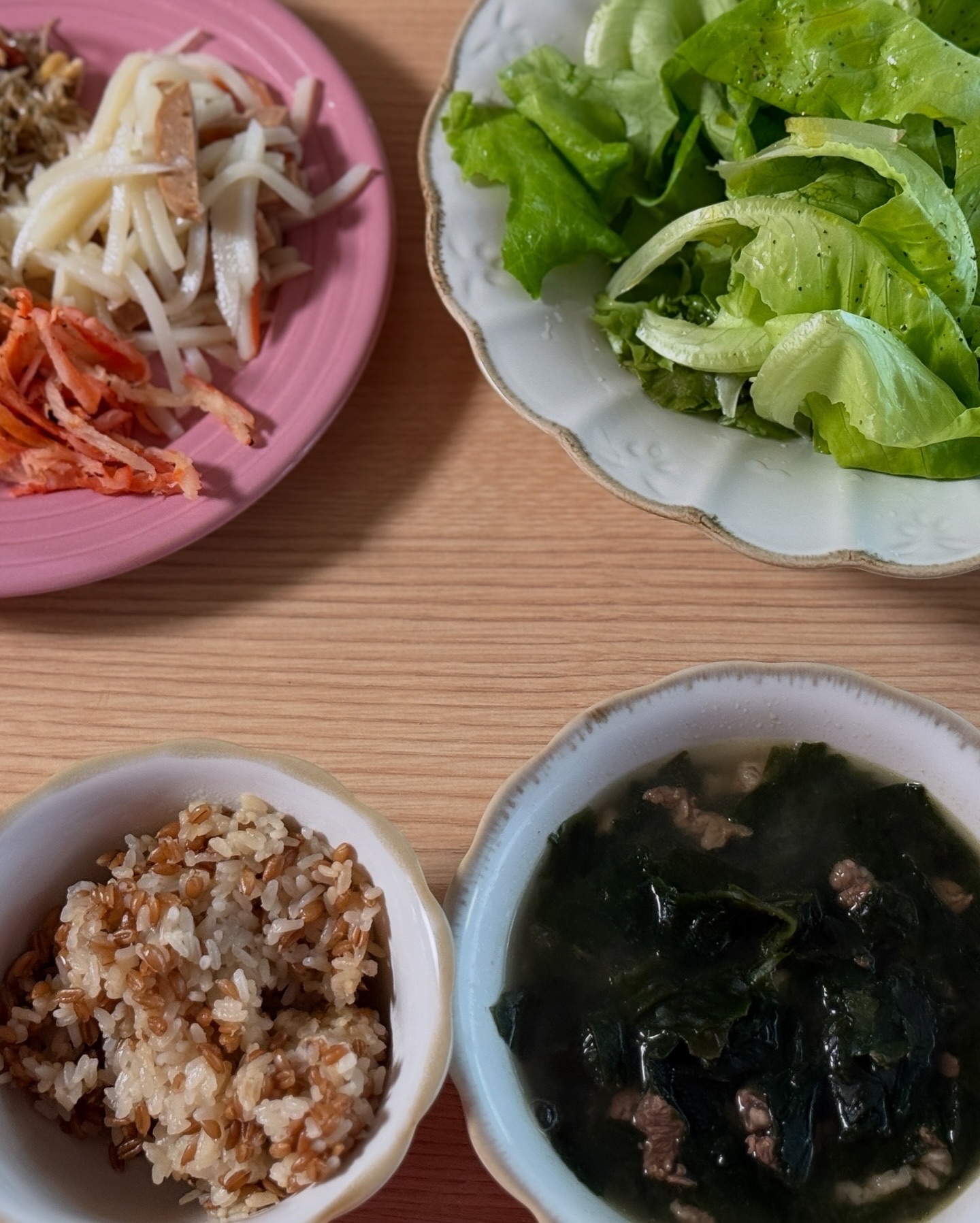 그는 "남편이 끓여 준 미역국 ♥ 이제 내년엔 둘이 아니라 셋이겠다...."라고 덧붙였다.