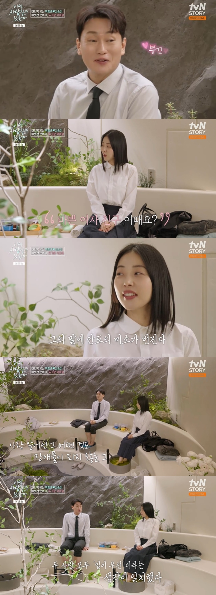 김승미는 박형준에게 "일과 사랑 중에 선택하라면"이라고 묻자, 박형준은 "일이 중요하죠. 일을 해야 사랑을 할 수 있는 거고"라고 말했다.