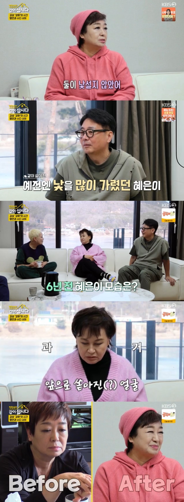 이에 홍진희는 혜은이에게 "같이 삽시다가 언니한테 큰 좋은 영향을 줬네"라고 말하자, 혜은이는 "내가 사는데 새로운 세상(을 열어줬어)"라며 '같이 삽시다'에 대한 감사함을 표했다.