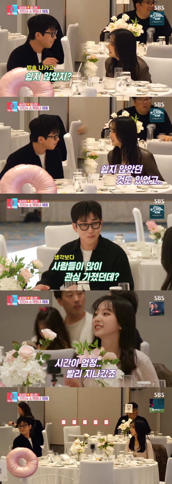 소개팅을 한지 벌써 5개월이 지났다는 얘기에 두 사람은 "시간이 빨리 지나간 것 같다"고 했고, 이후 대화 소재가 고갈된 듯 어색함이 감돌아 웃음을 자아냈다.
