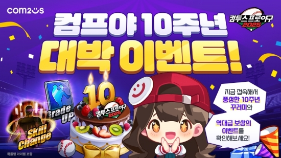 16일 컴투스(대표 남재관)는 자사 모바일 야구 게임 '컴투스프로야구2025'(이하 '컴프야2025')의 출시 10주년을 맞아 이용자 대상 특별 이벤트를 진행한다고 밝혔다.