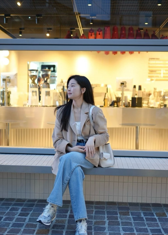 전진은 모자를 쓴 채 베이지 톤의 가디건을 입고 류이서의 옆에서 포즈를 취하고 있다. 류이서 또한 베이지 톤의 자켓과 청바지 패션으로 전진의 옆에서 밝게 웃고있다.