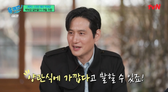 박해진은 "굳이 가깝다면 양관식에 가깝다고 말할 수 있다. 와이프가 제가 '나는 뭐 아빠로서 어떤가?' 이렇게 얘기했을 때 '오빠 양관식이랑 비슷한 점이 너무 많아' 이렇게 말을 들었다"라며 고백했고, 유재석은 "아내분께서 그렇게 이야기를 해주셨으면 뭐"라며 감탄했다.