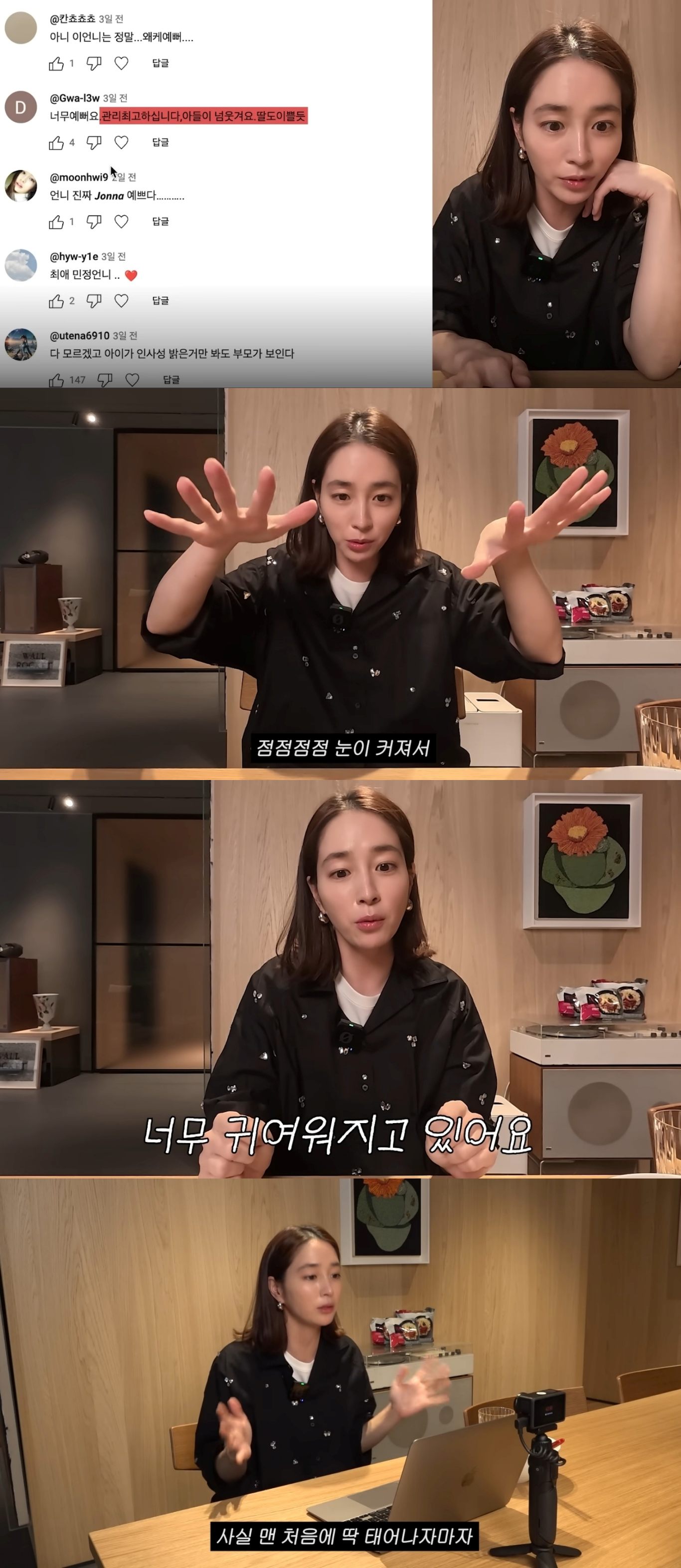 한 누리꾼의 '너무 예쁘다. 관리 최고이십니다. 아들이 너무 웃기고 딸도 예쁠 것 같아요'라는 댓글에 이민정은 "딸이 점점 속눈썹이 길어지면서 점점점점 눈이 커져서 너무 귀여워지고 있다"고 자랑했다.
