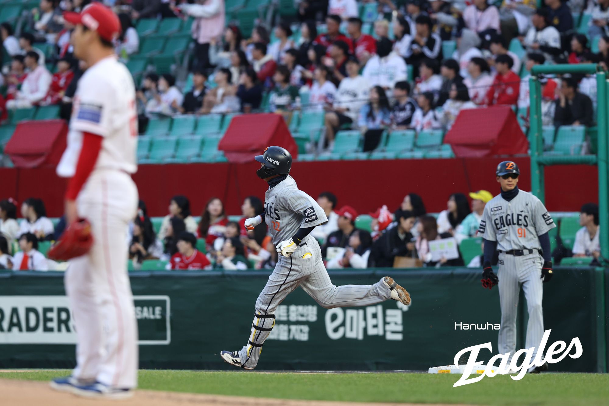 채은성은 노시환의 홈런으로 3-2 역전에 성공한 4회초 두 번째 타석에서도 우전안타를 치고 출루했고, 곧바로 나온 이진영의 적시 2루타에 홈을 밟았다. 점수가 5-2로 벌어진 6회초, 김민에게는 몸에 맞는 공으로 걸어나갔고, 이도윤의 안타와 황영묵의 볼넷에 3루까지 진루했으나 홈플레이트를 밟지는 못했다.