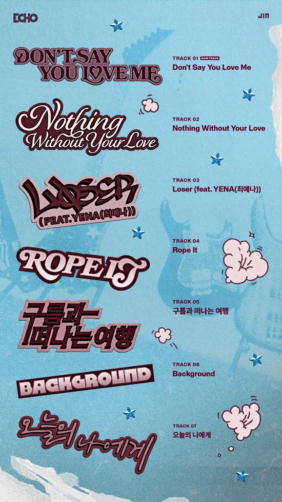진은 17일 0시 팀 공식 SNS에 미니 2집 '에코(Echo)'의 트랙리스트를 게재했다. 이번 앨범에는 타이틀곡 '돈트 세이 유 러브 미'를 비롯해 '낫띵 위드아웃 유 러브(Nothing Without Your Love)', '루저(Loser) (feat. YENA(최예나))', '로프 잇(Rope It)', '구름과 떠나는 여행', '백그라운드(Background)', '오늘의 나에게' 등 총 7곡이 수록됐다.