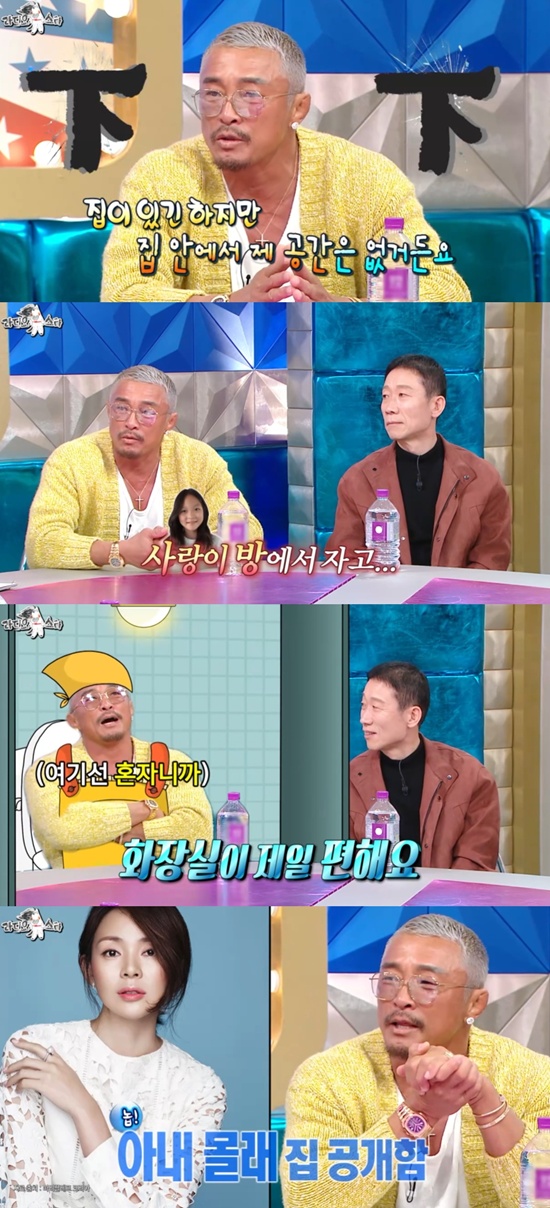 김구라가 "거실에서 게임을 못하냐"고 묻자 추성훈은 "거실은 눈치가 보인다. 거실에 있으면 뭘 시킨다. 화장실에 있으면 안 시키니까 거기기 있는 게 편하다"고 털어놓았다.