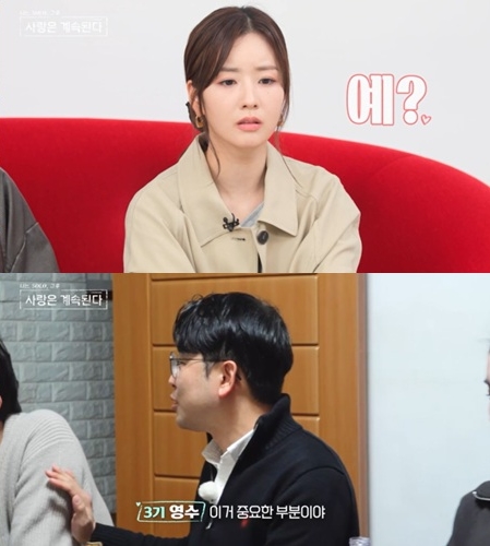 잠시 후, 한 여성 출연자는 3기 영수를 데리고 나가더니 “나랑 하루 종일 한 얘기가 다 거짓말이었나? 너무 깜짝 놀랐어”라고 앞서 말실수를 한 남자 출연자에 대한 서운함을 토로한다.