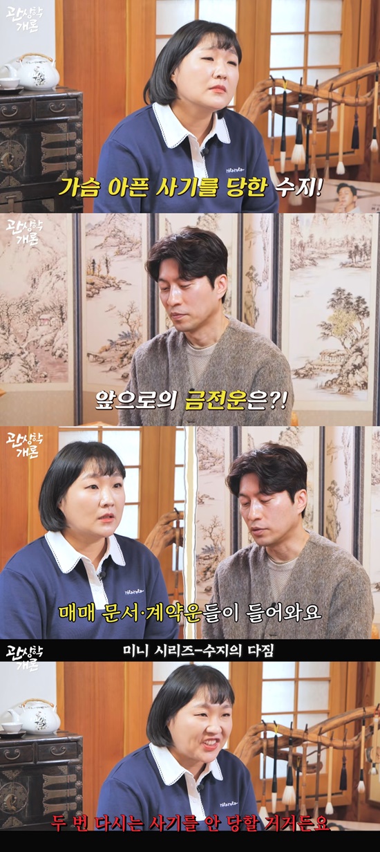 성준은 "3년후부터 금전운이 강하게 들어온다. 2년 후 가을부터 매매 운이 들어온다"고 했지만, 이수지는 "하지만 저는 죽을 때까지 집을 사지 않을 거다. 두 번 다시 사기를 당하지 않을 것"이라고 각오를 드러냈다.