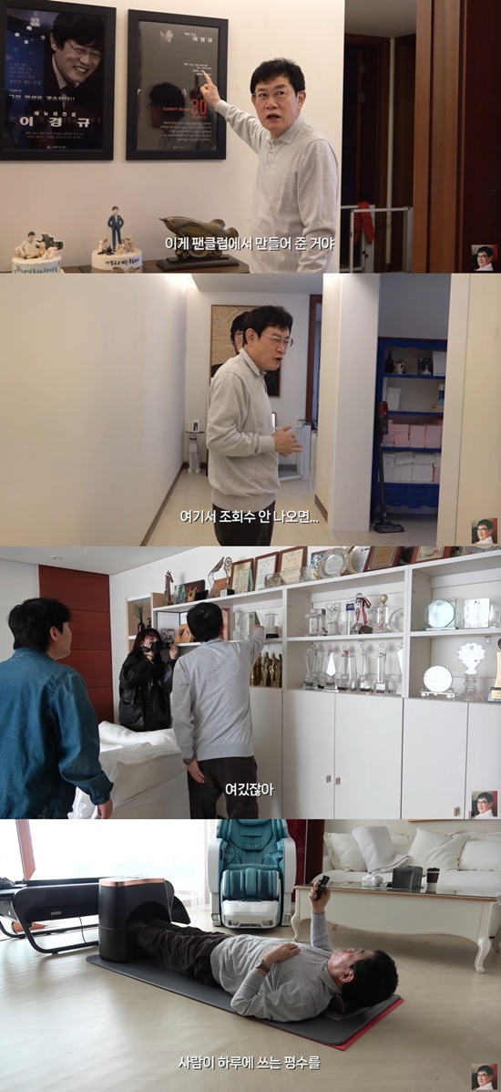 17일 이경규의 유튜브 갓경규 채널에는 '80평 집에서 단 4평만 사용하는 대부 이경규 집 최초공개 (+충격앨범)'라는 제목의 영상이 업로드됐다.