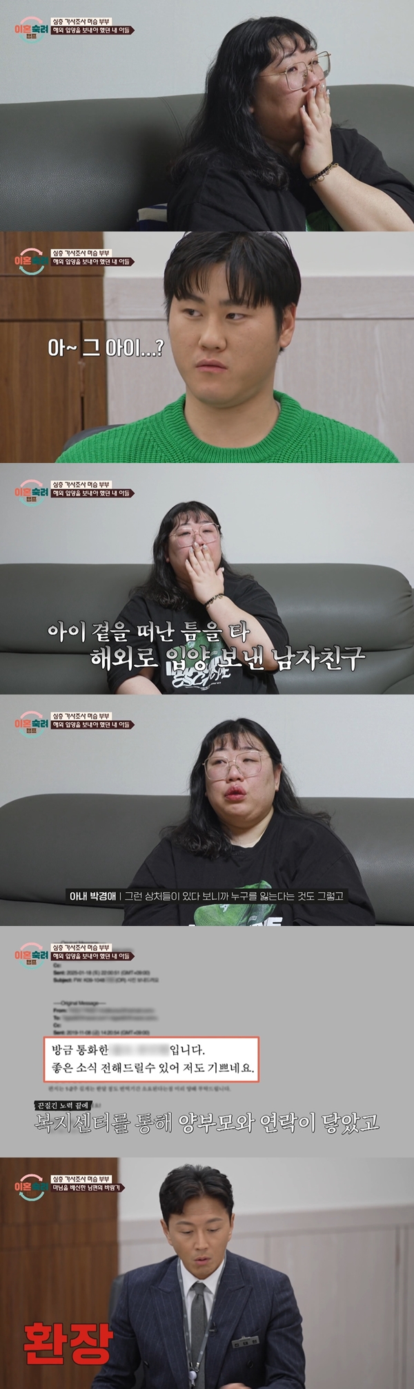 하지만 아내는 "애기 아빠가 안산에 방을 얻어주면서 한 달만 친구들하고 놀다와라고 했는데 없는 사이에 아이를 (해외로)입양보냈었다"라고 말해 모두를 충격에 빠뜨렸다.