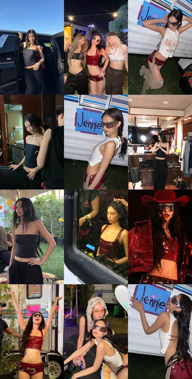 제니는 최근 코첼라 무대에 올랐던 사진을 담았다. 공개된 사진 속 제니는 무대에 오르기 전과 후 즐거움을 만끽하고 있는 모습이다. 다양한 포즈를 취하며 사랑스러운 분위기를 풍겨 시선을 끌었다.