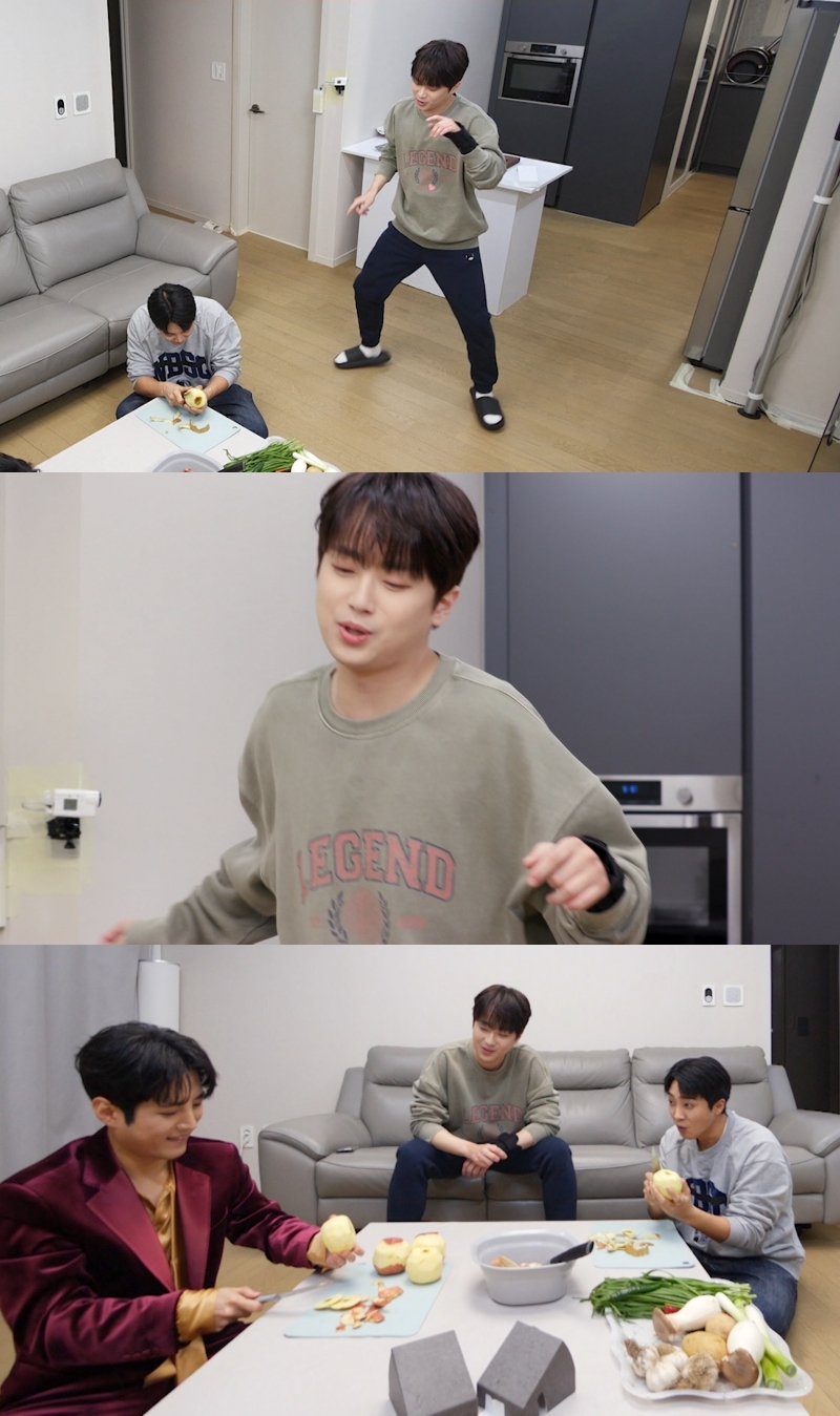 사과도 깎지 못하는 두 친구들의 심각한 상태를 확인한 이찬원은 깎는 법을 친절하게 전수하고 "미래의 장모님께 드리는 사과라고 생각하고 깎아보라"며 사과 깎기를 하드트레이닝 시켰다.