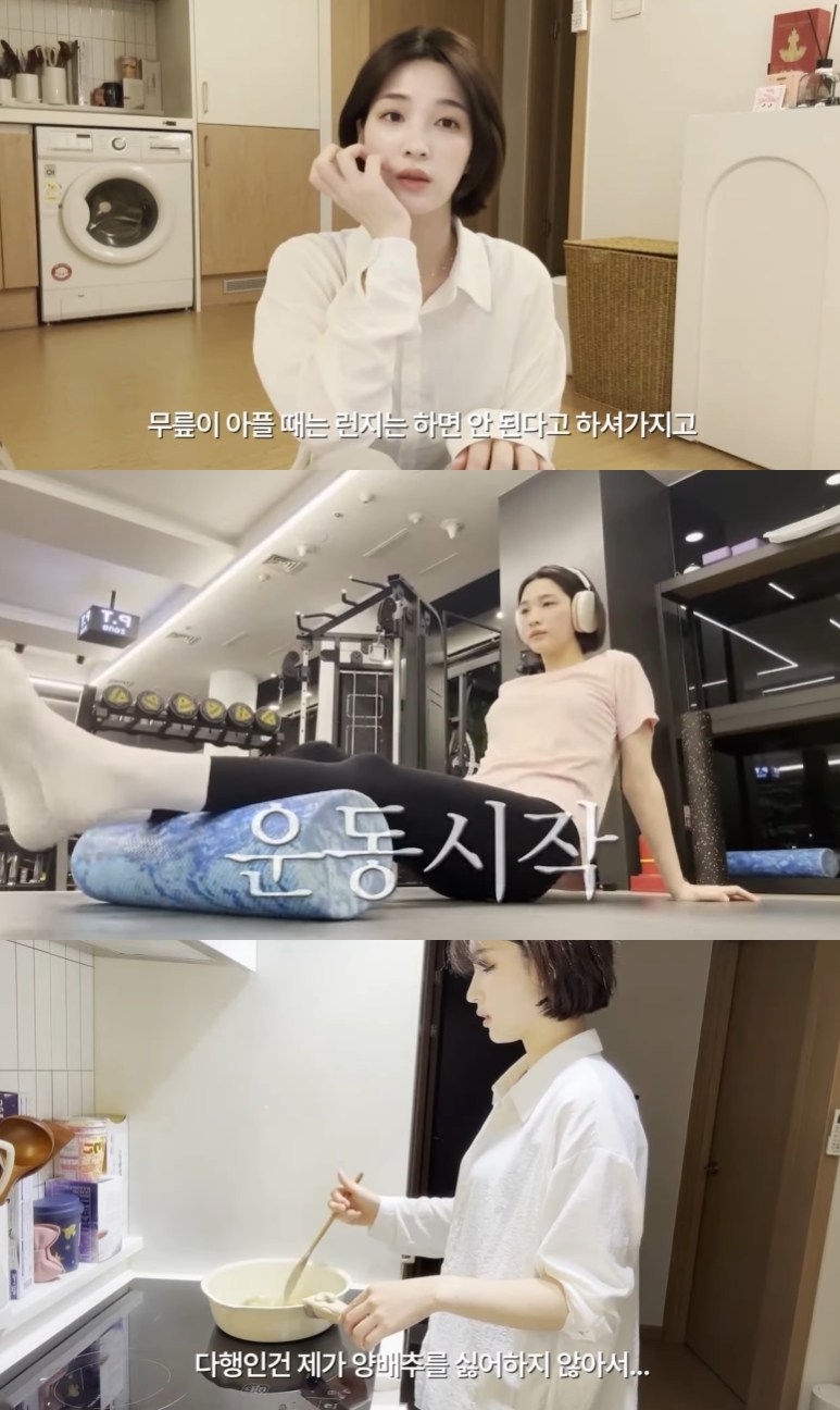 식사 후 율희는 스트레칭을 하며 "런닝할 때는 허벅지 근육을 많이 키워줘야 좋더라. 그래서 나도 무릎이 나으면 런지나 스쿼트를 꾸준히 잘 해주려고 한다. 무릎이 아플 땐 런지를 하면 안 된다고 해서 많이 안 하고 있는 상태"고 설명했다.