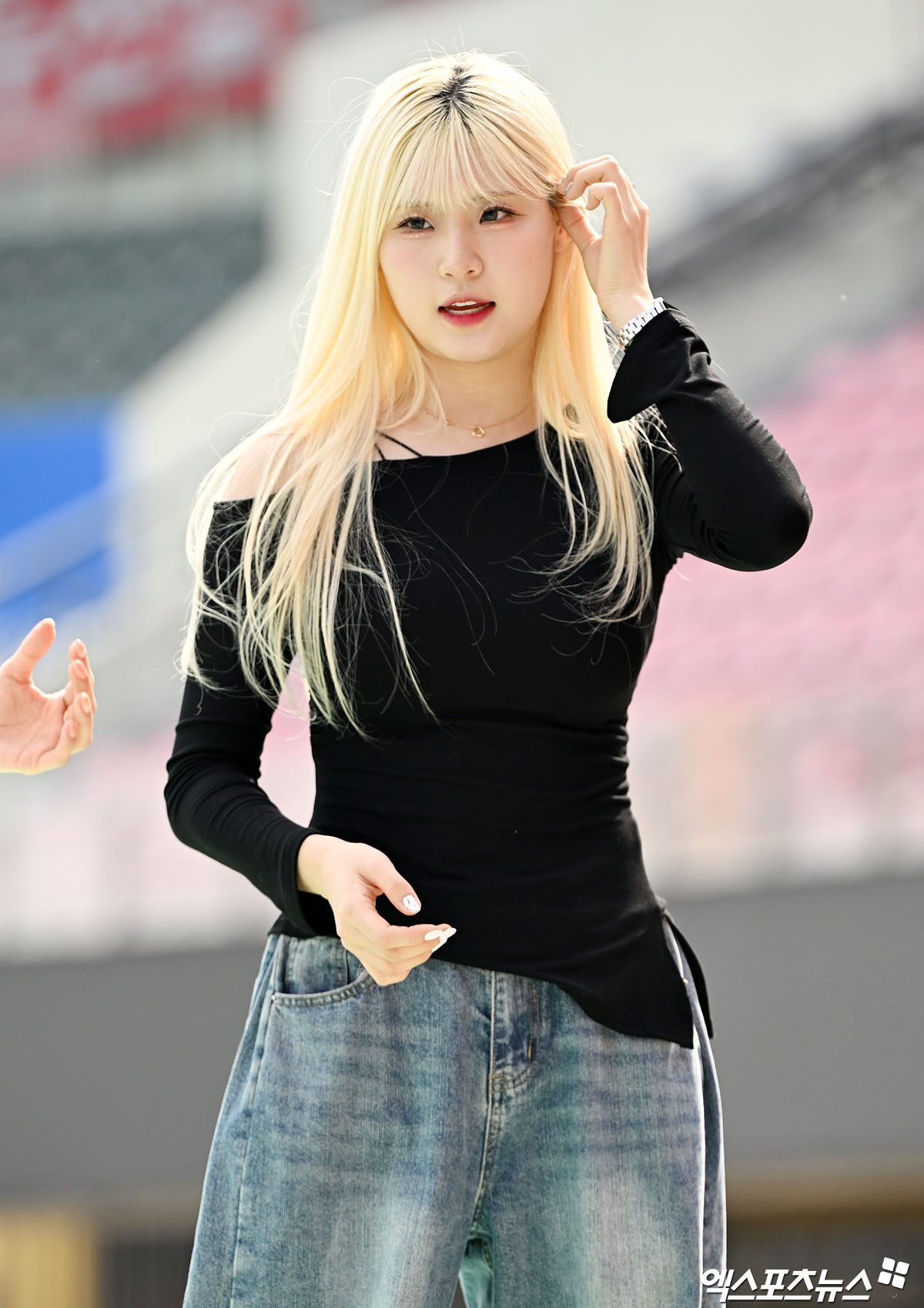 (엑스포츠뉴스 잠실, 김한준 기자) 18일 오후 서울 송파구 잠실야구장에서 열린 '2025 신한 SOL Bank KBO리그' KIA 타이거즈와 두산 베어스의 경기, 안혜지 치어리더가 리허설에 임하고 있다.