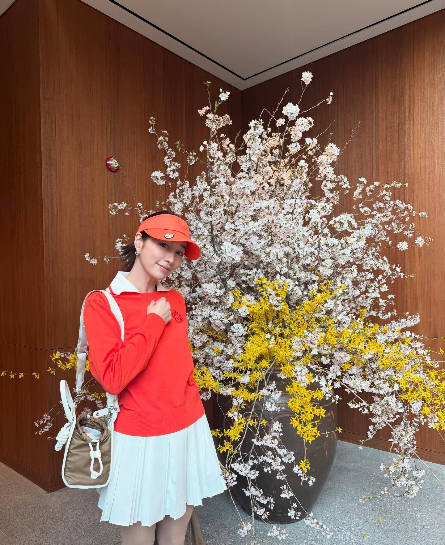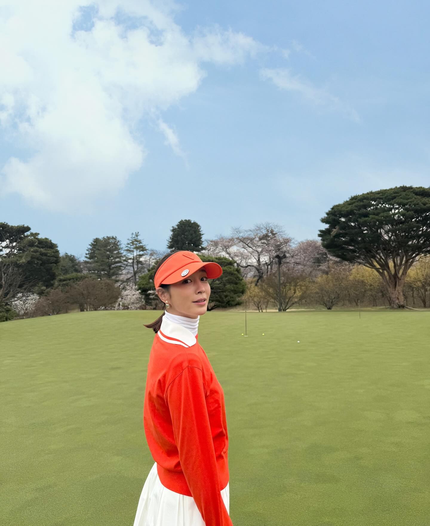사진 속 이민정은 레드 컬러의 니트와 화이트 컬러의 스커트를 입고 골프 웨어를 입고 골프장에서 미모를 자랑하고 있다.